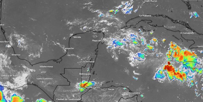 El ingreso de aire marítimo tropical en combinación con la vaguada maya estarán generando lluvias moderadas en los tres estados de la península de Yucatán.