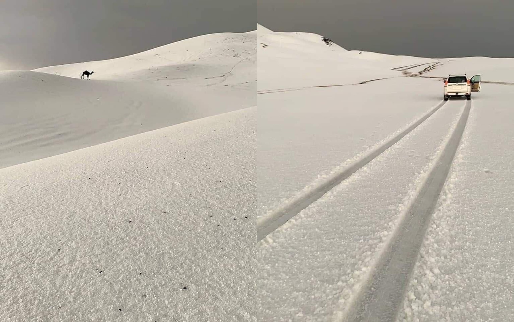 El desierto de Hail, ubicado en Arabia Saudita se cubrió de granizo tras las tormentas eléctrica que se registraron en la región.