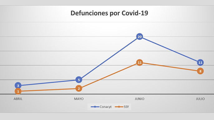 La SSY sigue sin informar a la población yucateca los otros dos fallecimientos ocurridos en abril, los tres de mayo, los nueve de junio y los tres de julio, de acuerdo con la información proporcionada en la página electrónica datos.covid-19.conacyt.mx.