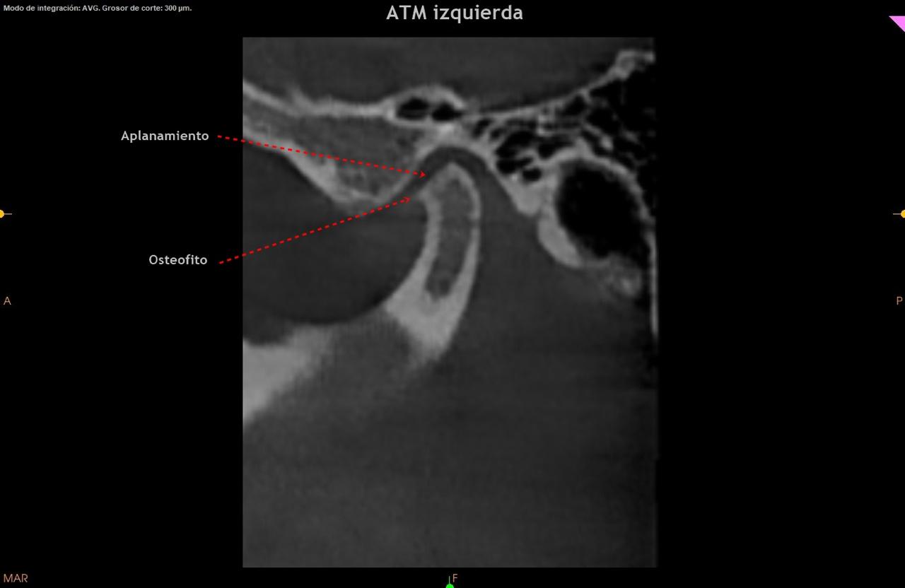 Los osteofitos en la ATM generalmente se desarrollan debido a la degeneración del cartílago que puede acompañar condiciones como la osteoartritis o el desgaste crónico de la articulación.