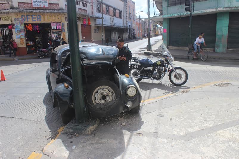 Un menor de cuatro años y una mujer de 39 resultaron heridos con golpes leves, luego de que el conductor del vehículo en el que viajaban como pasajeros perdió el control del mismo y se estrelló contra un semáforo de la calle 65 con 52, del primer cuadro de la ciudad.