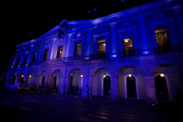 Palacio de Gobierno de color azul, como una muestra de su respaldo a las